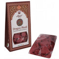 Il sangue di drago è una resina rosso intenso e lucente utilizzata per bruciare l'incenso. Proviene da una palma asiatica chiamata Daemonorops draco, chiamata anche Palma del Drago. La resina del sangue di drago è stata utilizzata per migliaia di anni in India come parte dei loro rituali. Questa resina pura si presenta in un pezzo solido.