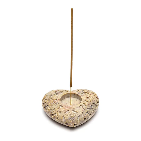 Bbrucia incenso / Porta candela Cuore pietra ollare naturale